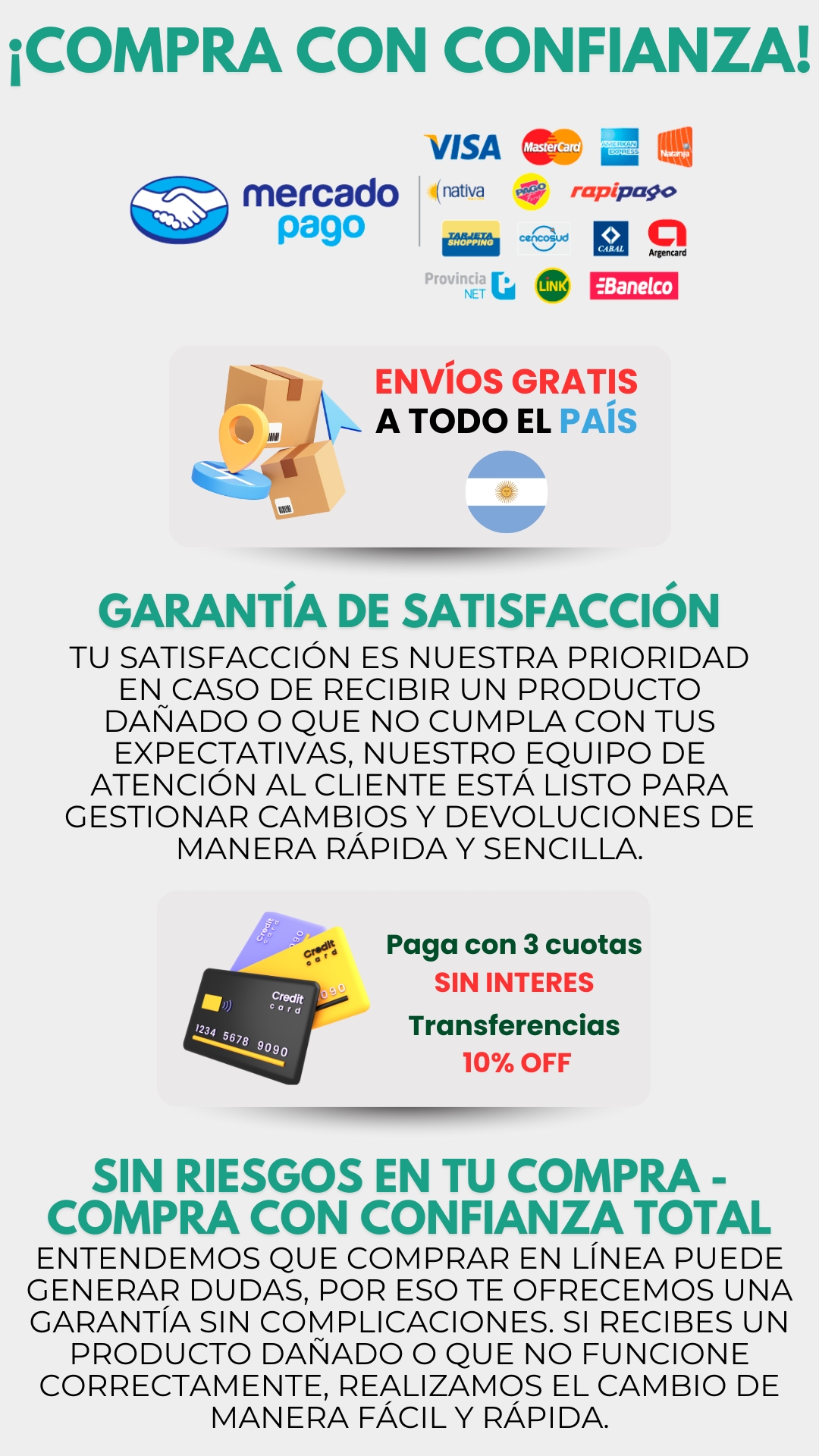 El descuento se aplicará sobre el precio del producto (sin envío) al elegir el medio de pago.